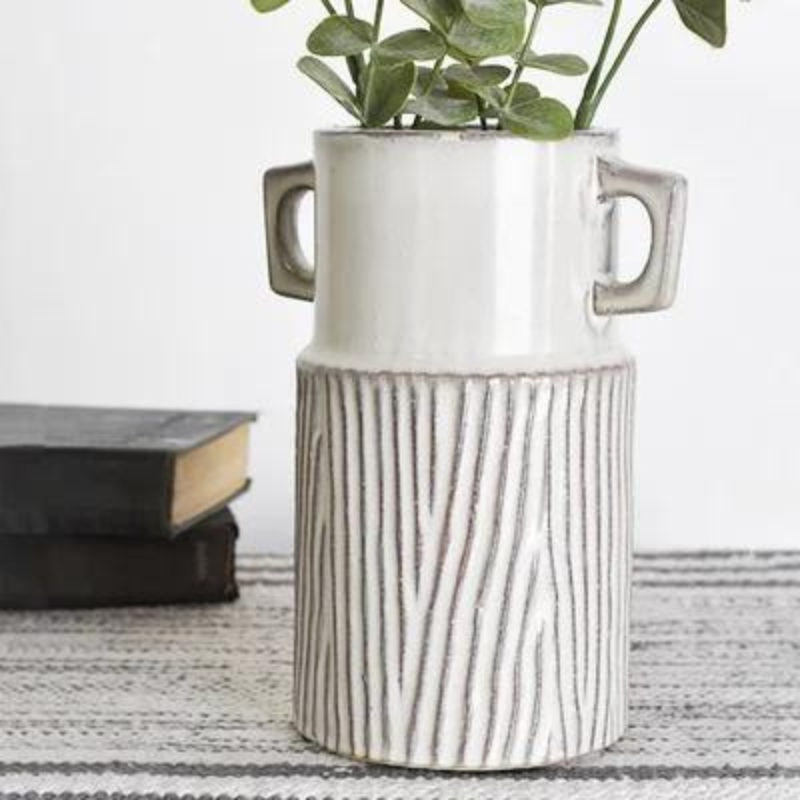 Striped Ceramic Handled Vase